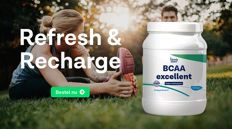 Je spiermassa is voor 35% opgebouwd uit BCAA’s. Men noemt ze essentieel omdat je lichaam zelf geen BCAA's kan aanmaken, je moet ze via de voeding of supplementen binnenkrijgen. BCAA's neem je tijdens en direct na een intensieve training. Voor hardlopers adviseren wij BCAA Excellent. BCAA Excellent bevat 2 x zoveel als het gemiddelde BCAA supplement. Daarnaast bevat BCAA EXCELLENT de aminozuren L-Glutamine en L-Lysine om de werkzaamheid te verhogen.