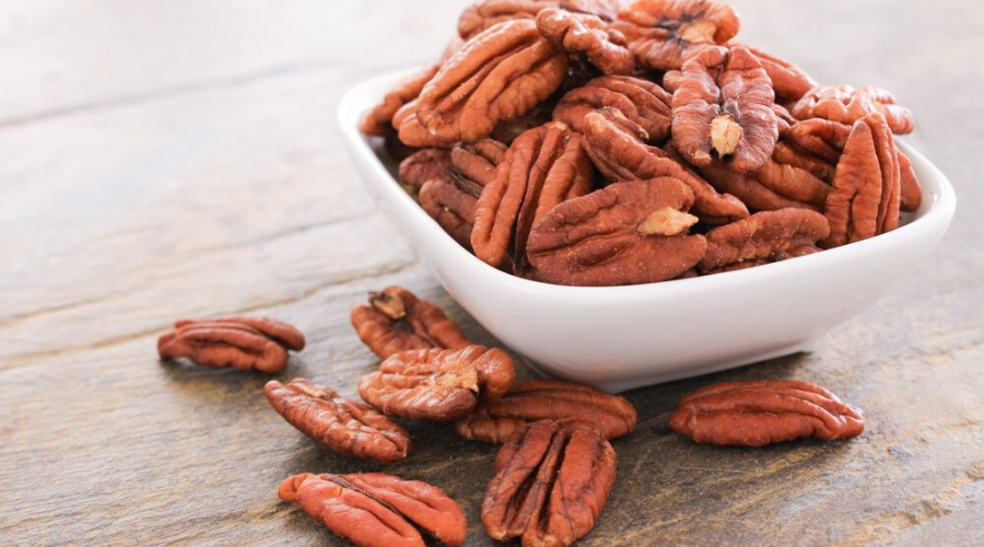 Pecannoten bevatten 19 vitamines en mineralen, waaronder foliumzuur, calcium, magnesium, koper, fosfor, kalium, mangaan, zink, vitamine E en A en verschillende B-vitamines.