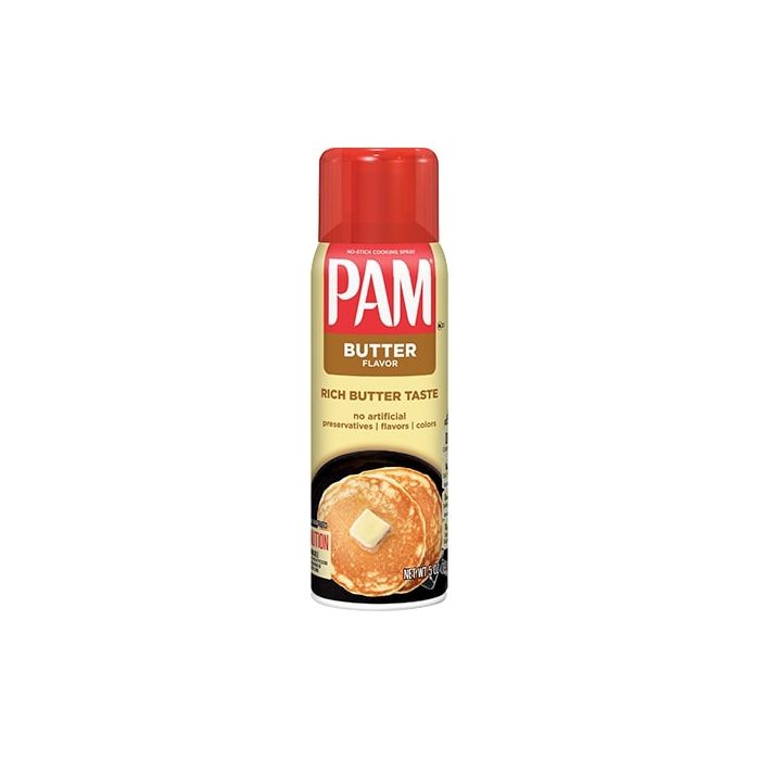 PAM Butter Cooking Spray zorgt ervoor dat jouw eten niet aanbakt zonder extra calorieën aan je maaltijden toe te voegen. Deze bakspray voegt een lekkere boter smaak toe aan gerechten – zonder de calorieën van boter.